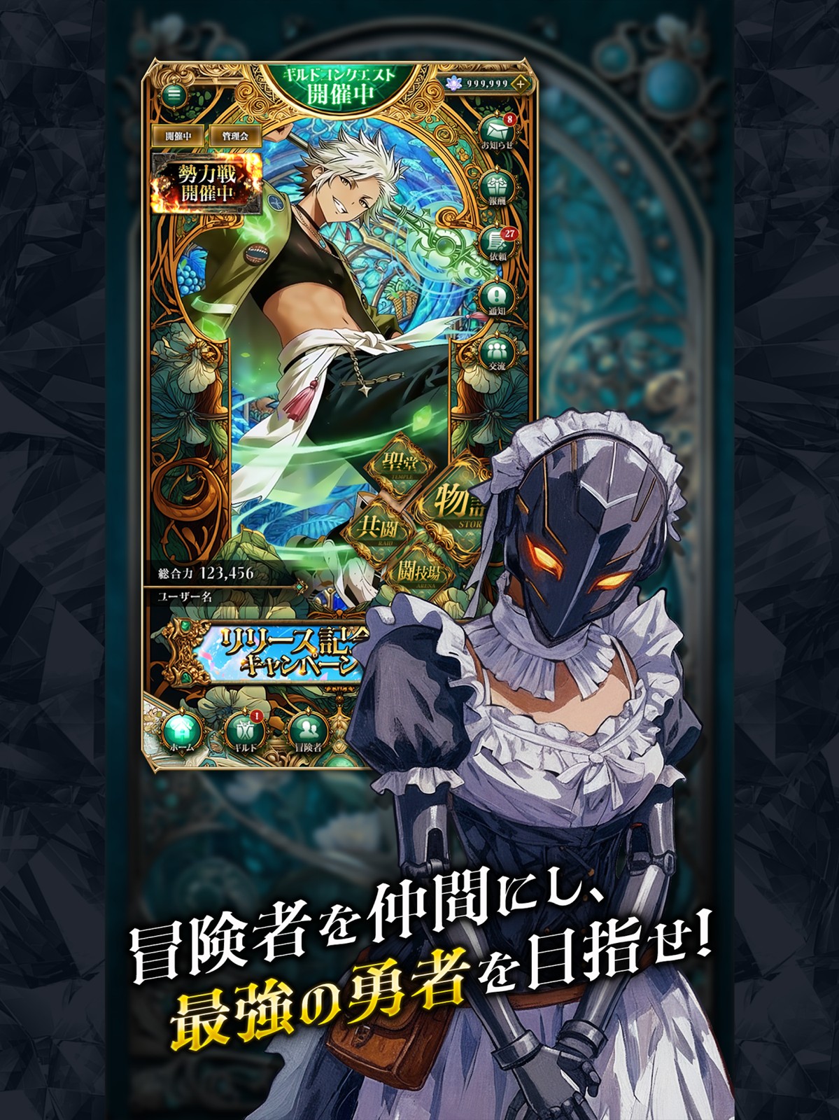 「勇者×選挙」という斬新な世界観が話題を呼んでいる本作は、アールヌーヴォー調の美麗なビジュアルと100人のアイドル姫君が登場する大規模ギルドバトルが特徴なんです。