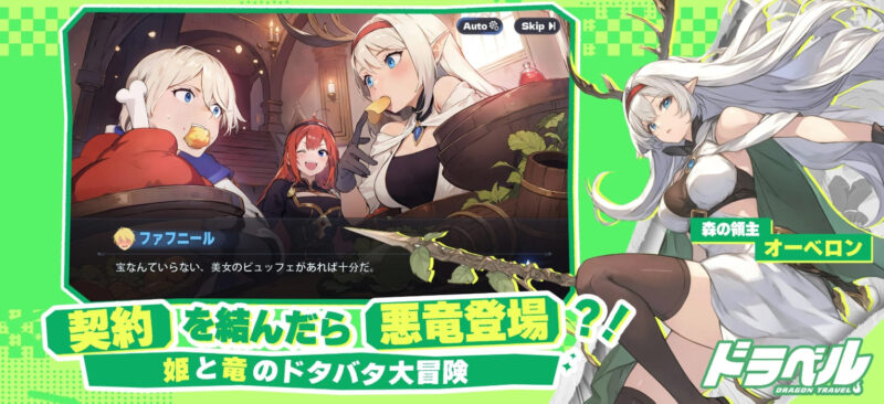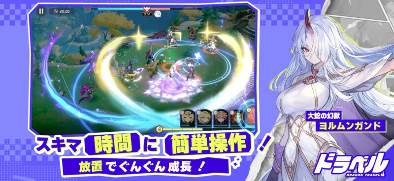 ドラベルは、放置で資源を回収して育てる気持ちよさと、幻霊の編成で差がつくやり込みが両立したドタバタRPGです。