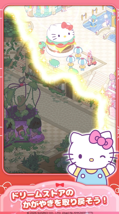 ハローキティ:マイドリームストアは、サンリオの人気キャラクターたちと一緒に、ちょっぴりさびれたショッピングタウンを再建していくマージパズルゲームです。