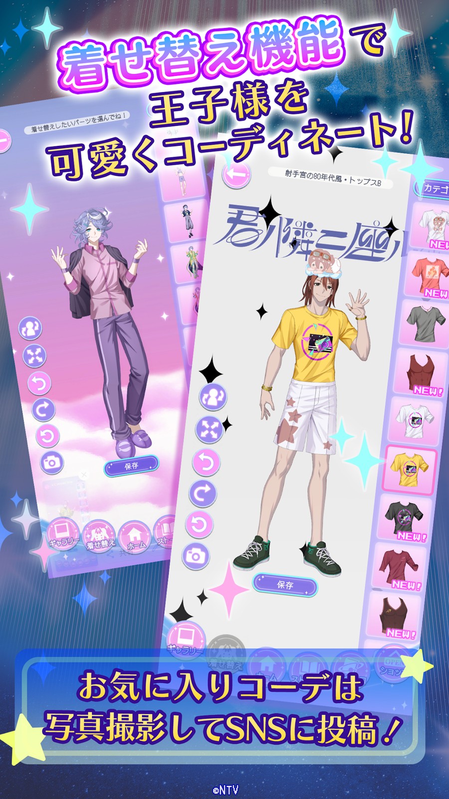 キミノスでは、王子様たちに様々な衣装を着せ替えることができます。