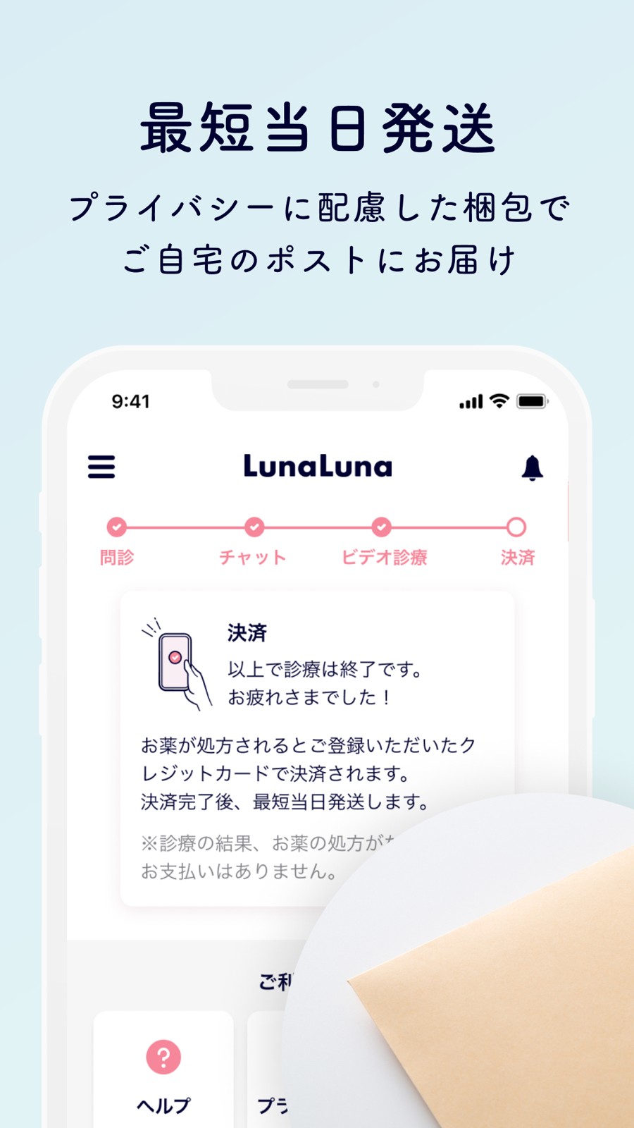 『ルナルナ おくすり便』は、スマホ1台でピルのオンライン診療から定期配送まで完結できるサービスなんです。