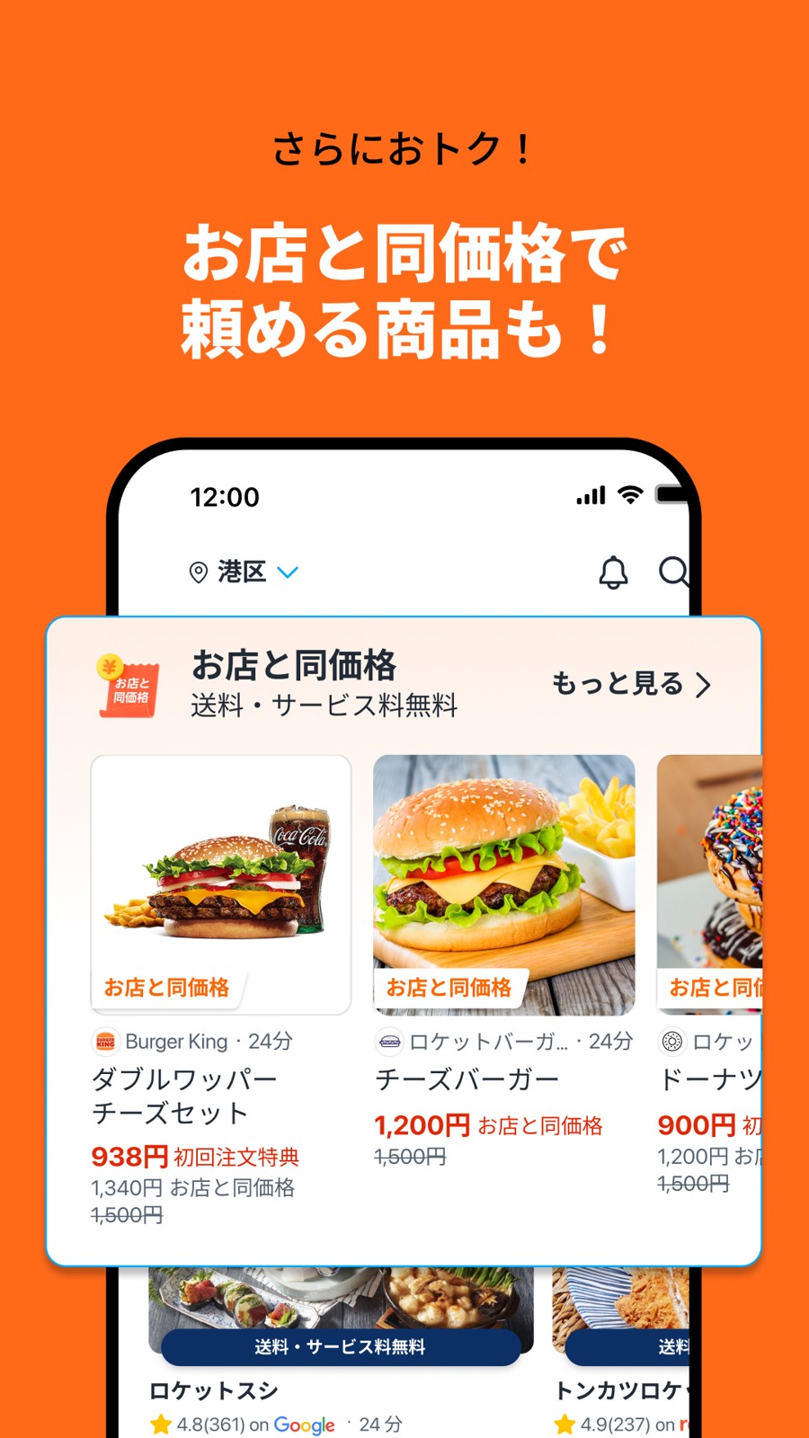さらに店頭と同じ価格で提供される店舗も多く、実店舗で買うのと変わらない金額で注文できちゃいます。