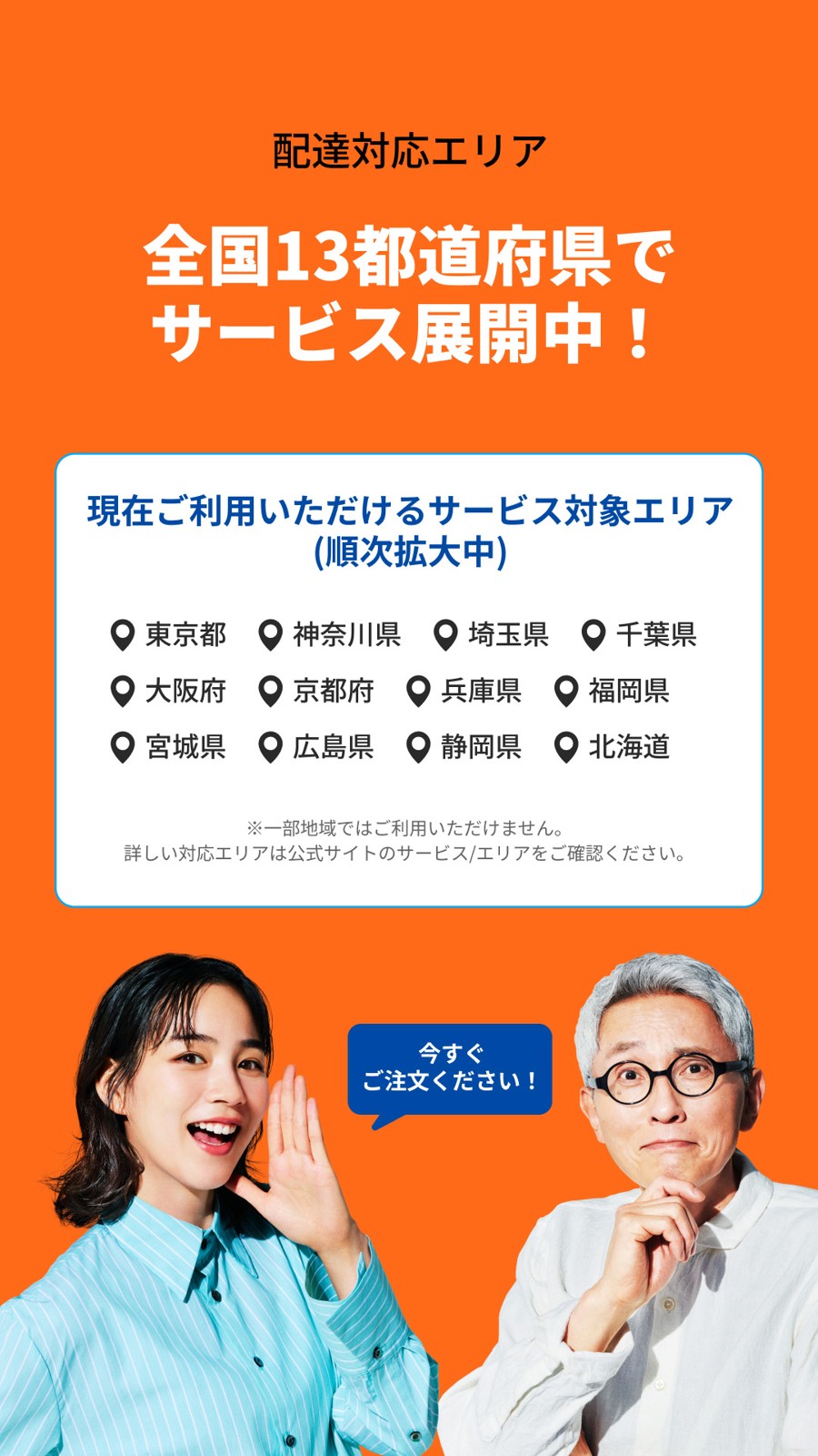 対応エリアも12都府県に限られているので、地方在住の方は利用できません。