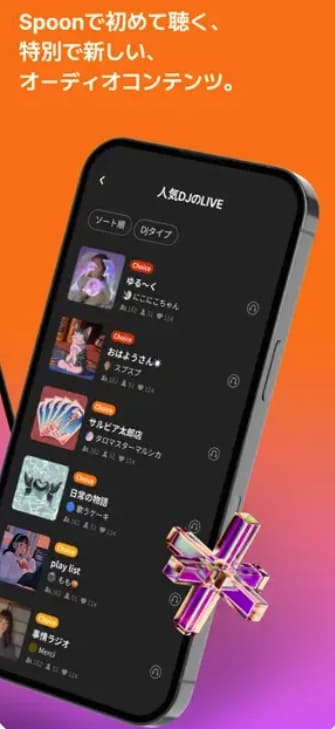 Spoon(スプーン)は、声だけで繋がれる音声ライブ配信アプリです。