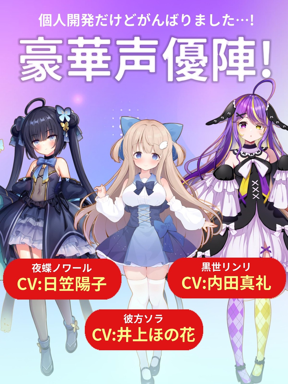 個人開発ながら照井春佳さん、本渡楓さん、日笠陽子さんなど豪華声優陣が30名以上参加している点も見逃せません。